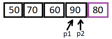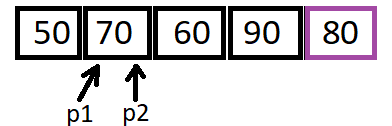 Step 4: Increase p1 when value at p2 < pivot